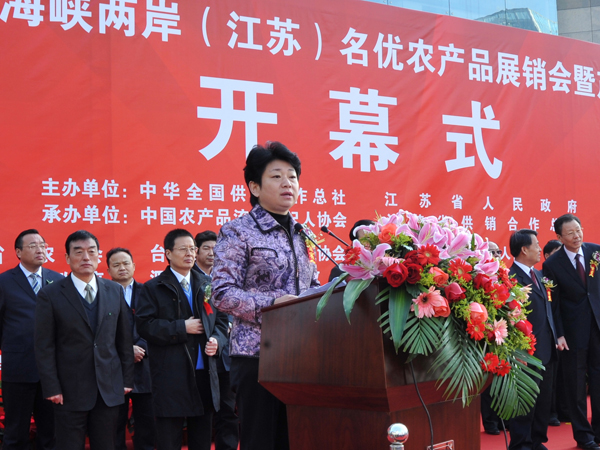 黄莉新在致辞中说,江苏既是经济大省,也是农业大省,近年来全省大力推进思路创新、科技创新、机制创新、政策创新、管理创新,连续八年保持了粮食增产、农业增效、农民增收、农村发展的好形势。黄莉新指出,举办此次农产品展销会,对于宣传推介苏台两地名优农产品、搭建产销对接平台、搞活农产品流通、造福两岸民众具有重要意义。