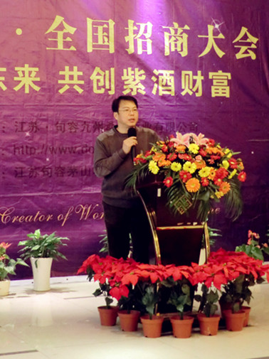 伴随着元旦的喜庆气氛2011年12月31日,“紫气东来 共创紫酒财富”东方紫•2011年度第八届招商会,在江苏省句容曙光国际酒店成功举办。句容九州桑果酒业总裁陈总、中国农业大学教授博士生导师、中国葡萄酒酿造专家、东方紫酒研发中心主任黄卫东教授出席了本次会议。会议介绍了东方紫品牌的发展战略及远景规划、经销商政策以及公司酒庄用地的规划和设计以及系列紫酒产品的市场前景分析,并且黄卫东教授深度分析了东方紫酒的价值养生机理及与红酒相比的养生趋势。