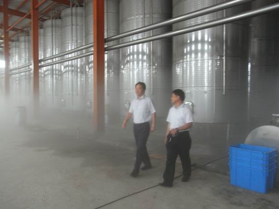 [因为储酒罐保持低温恒温状态,当开厂房门后形成了雾气,如同仙境一般]