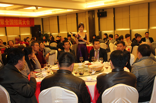 在17日晚东方紫·紫酒”品鉴会上,公司董事长高董致欢迎辞并简单地介绍了东方紫酒情况。身穿紫色晚礼服的模特伴随着古典音乐带领大家认识东方紫酒。