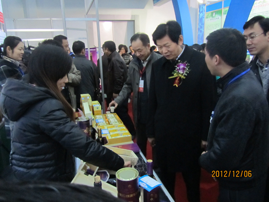 开幕式后,镇江市委副书记李茂川同志, 在镇江市供销总社党委副书记屈振国同志的陪同下来到了东方紫的展台,品尝了东方紫·紫酒产品,并予以鼓励。 [右三 李茂川同志;右四屈振国同志]